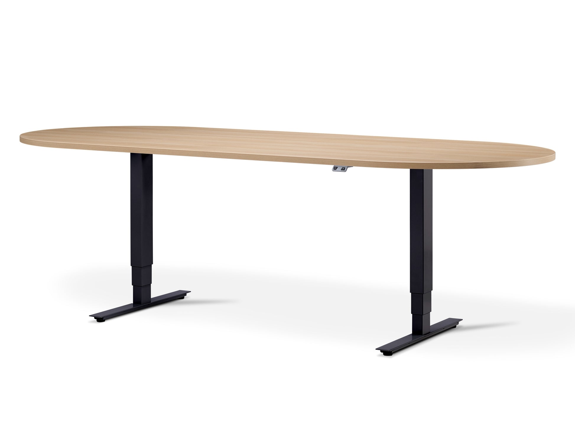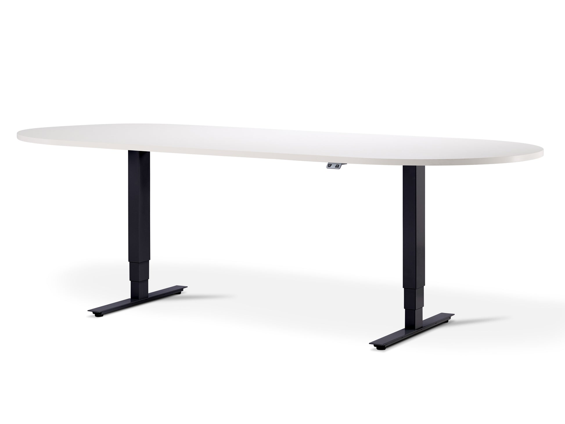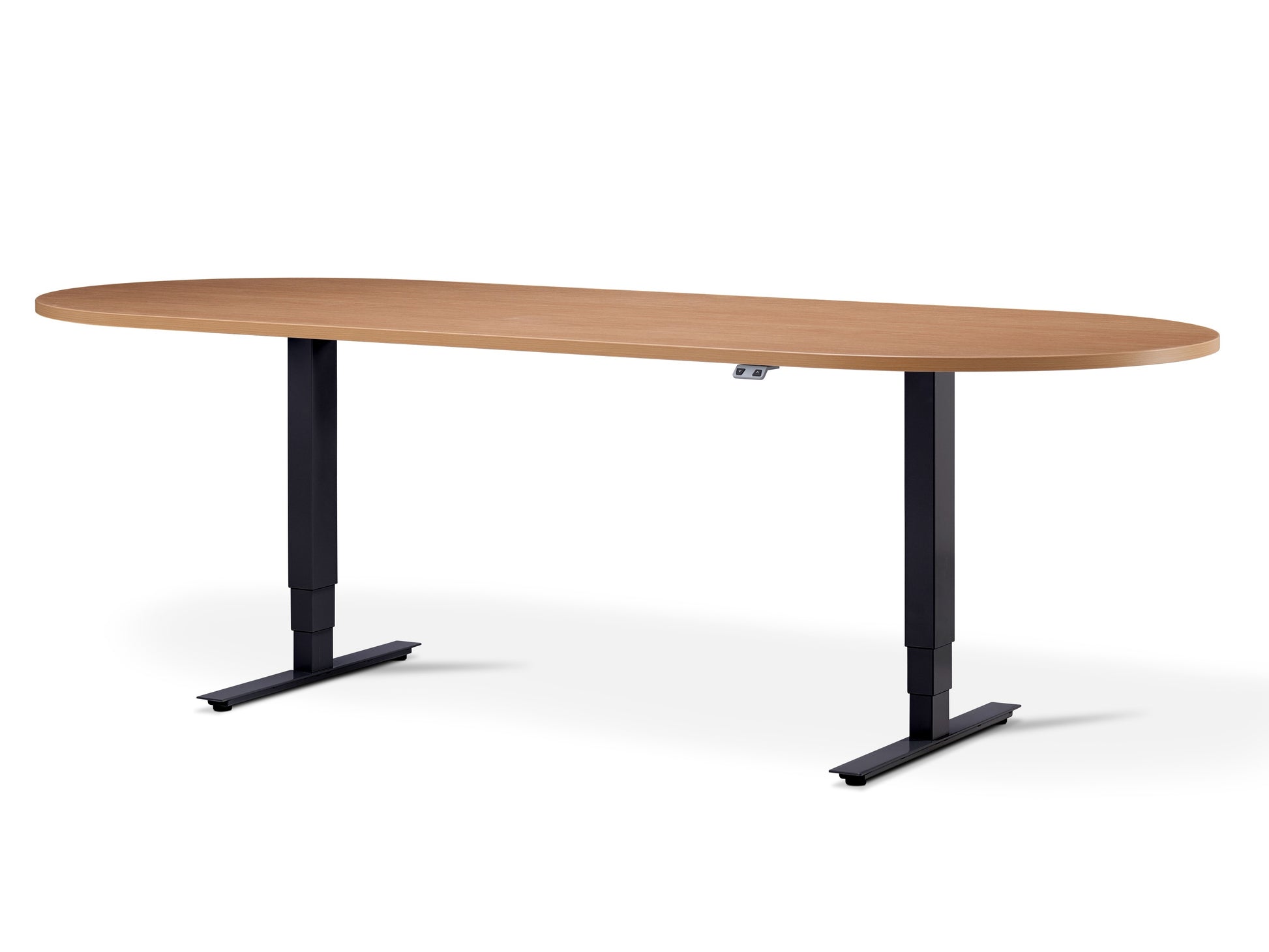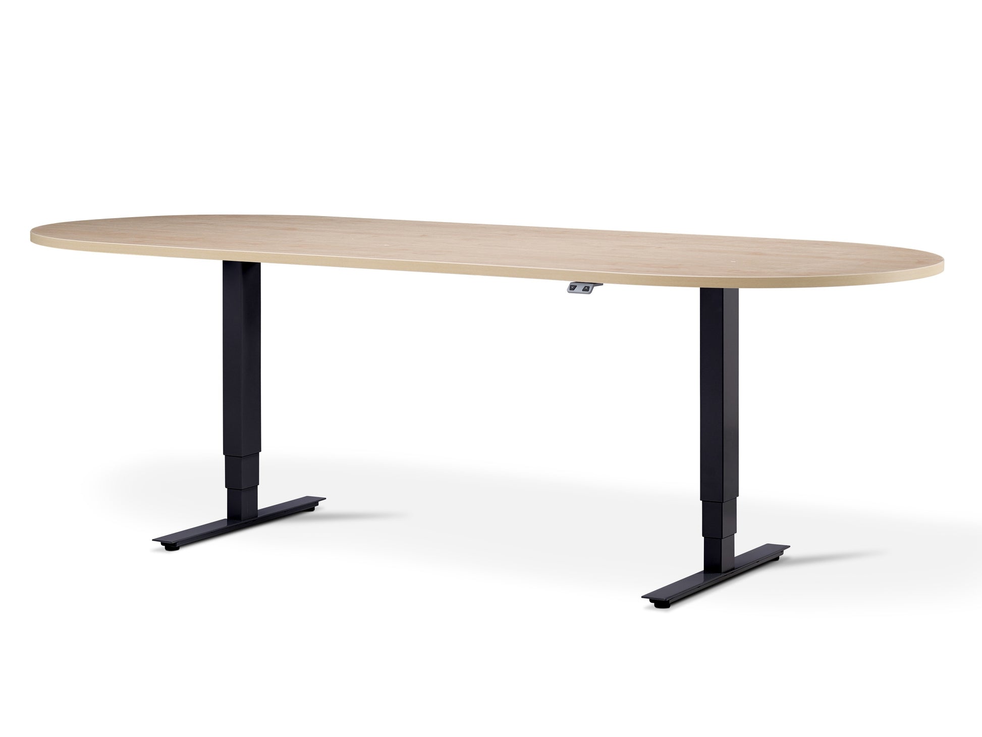 The Stockholm electric height adjustable meeting table is 2.4 m x 1 m and features pleasant curved ends, it's Ideal for smaller boardrooms and collaborative areas where standing up for meetings provides a lively and energetic cadence.