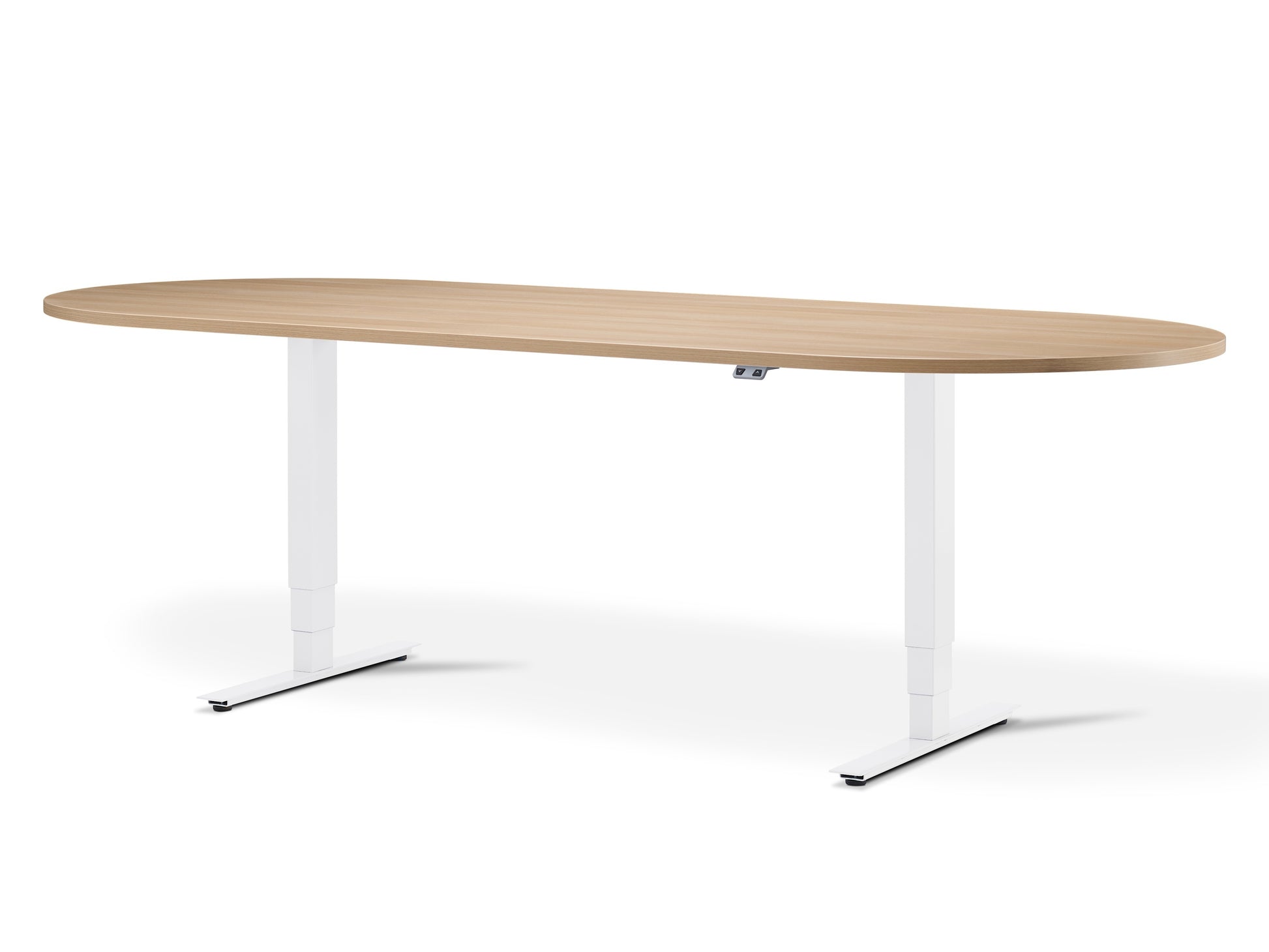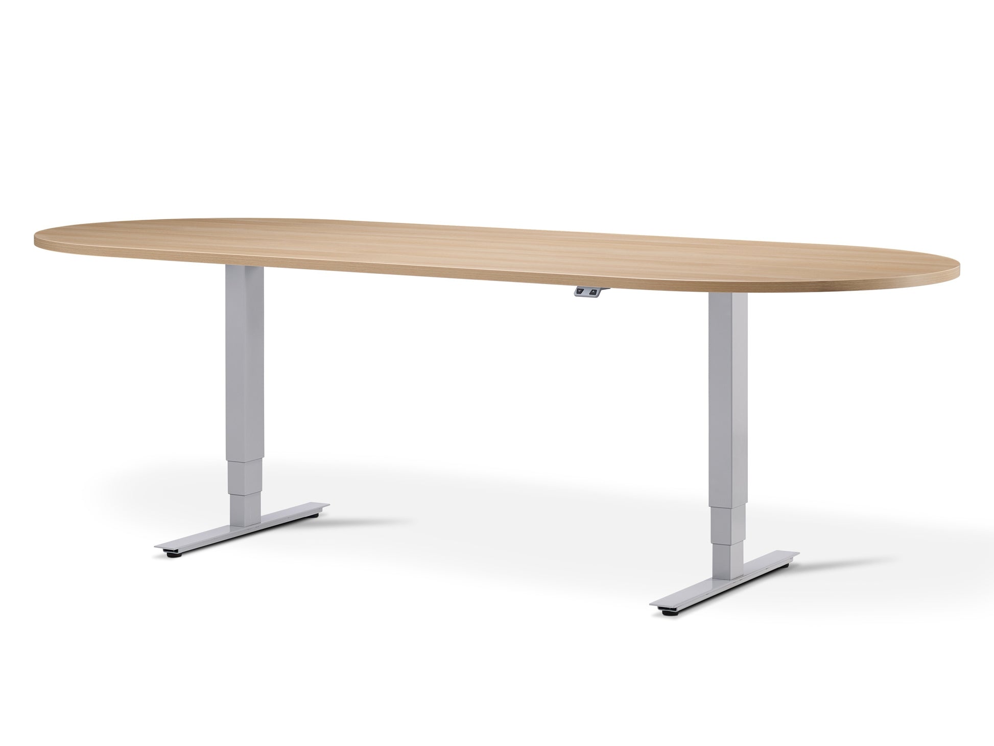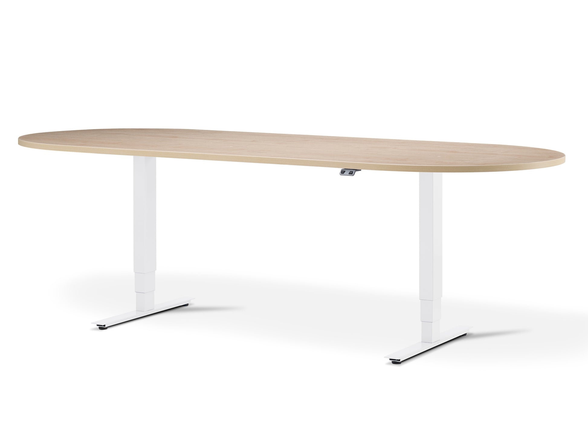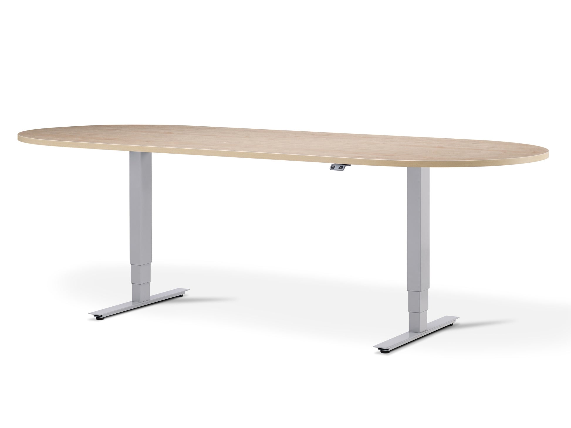 The Stockholm electric height adjustable meeting table is 2.4 m x 1 m and features pleasant curved ends, it's Ideal for smaller boardrooms and collaborative areas where standing up for meetings provides a lively and energetic cadence.