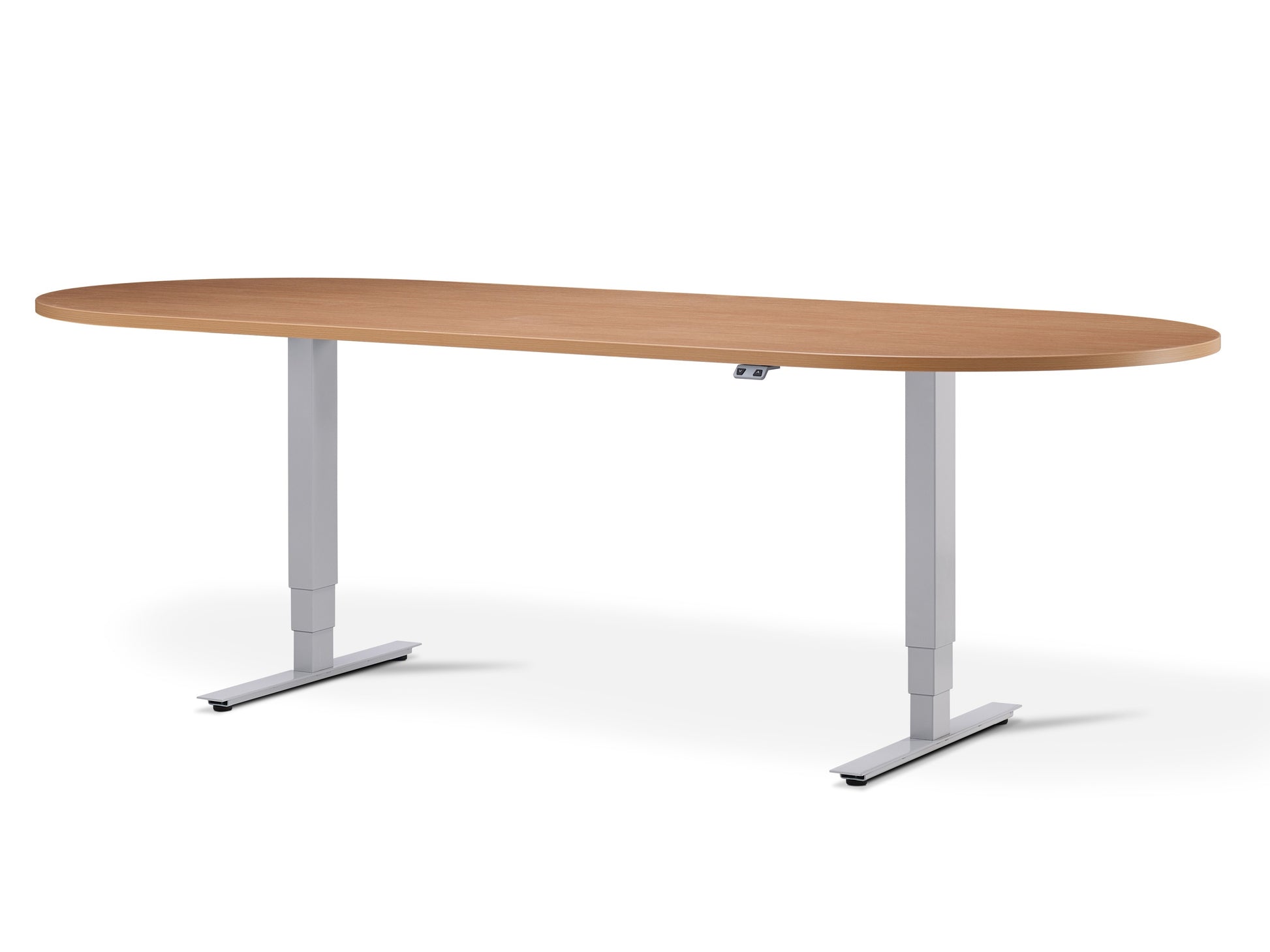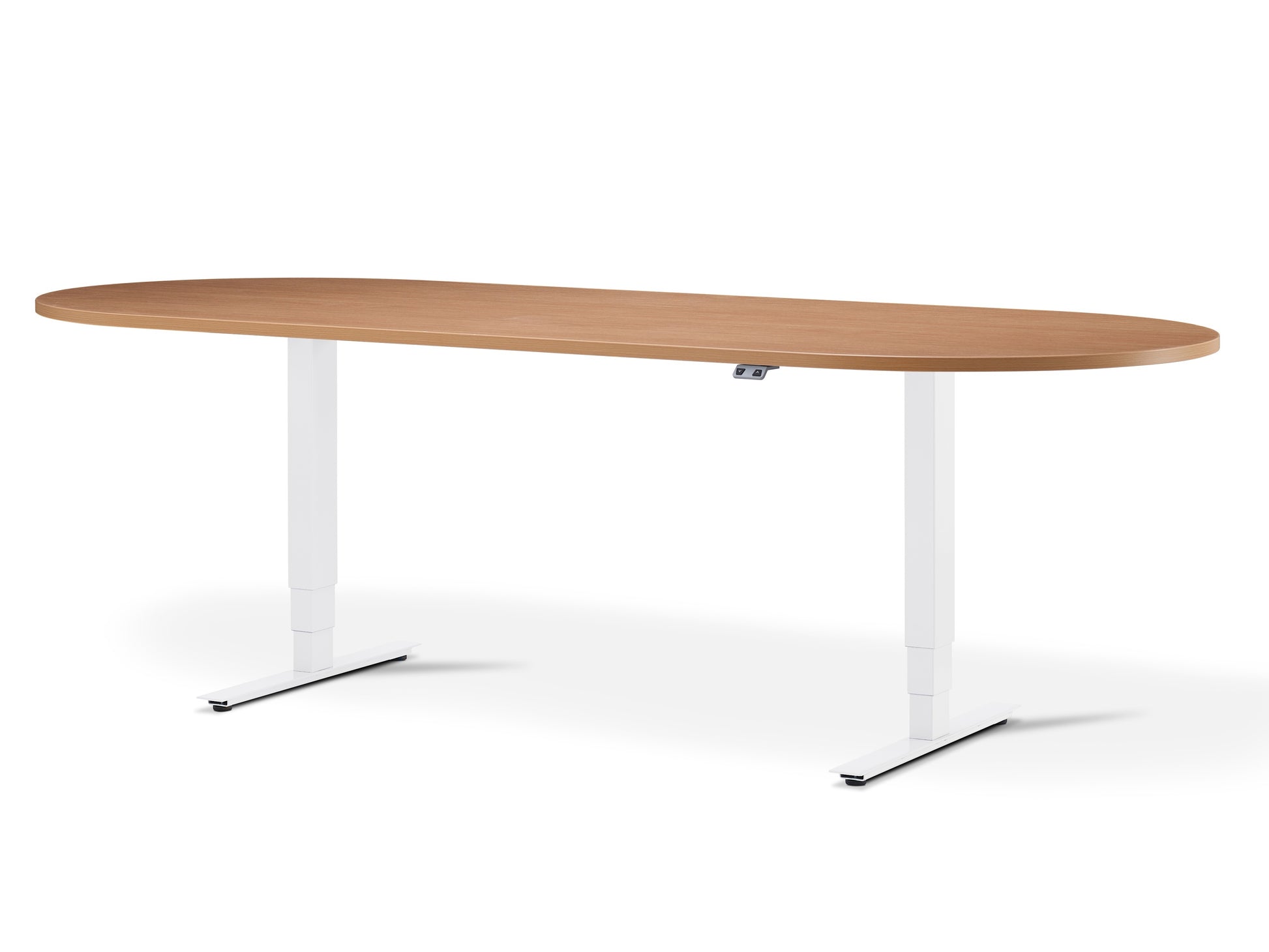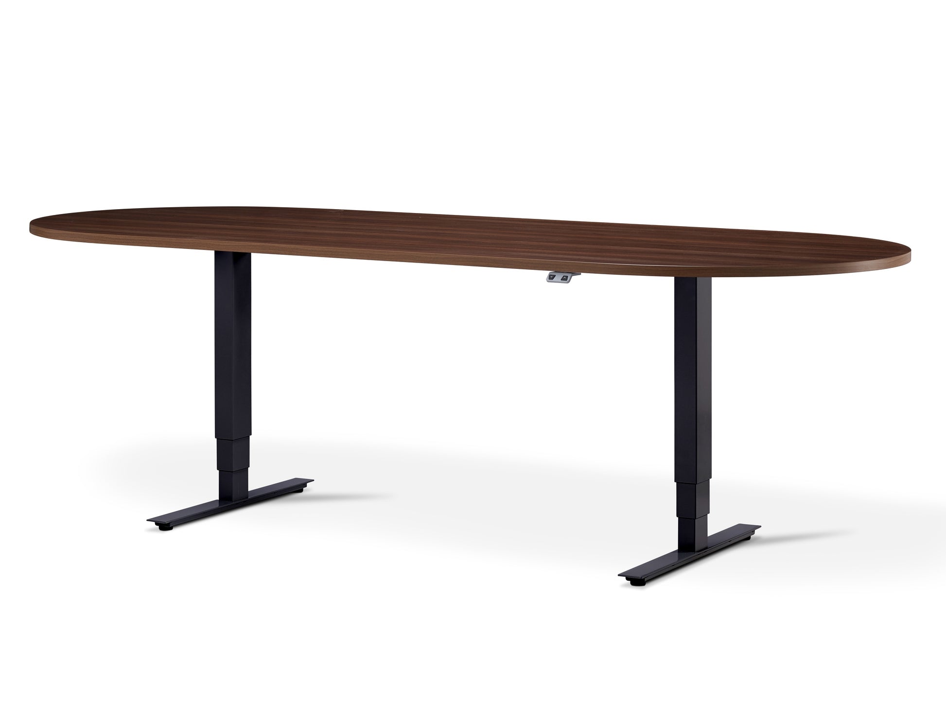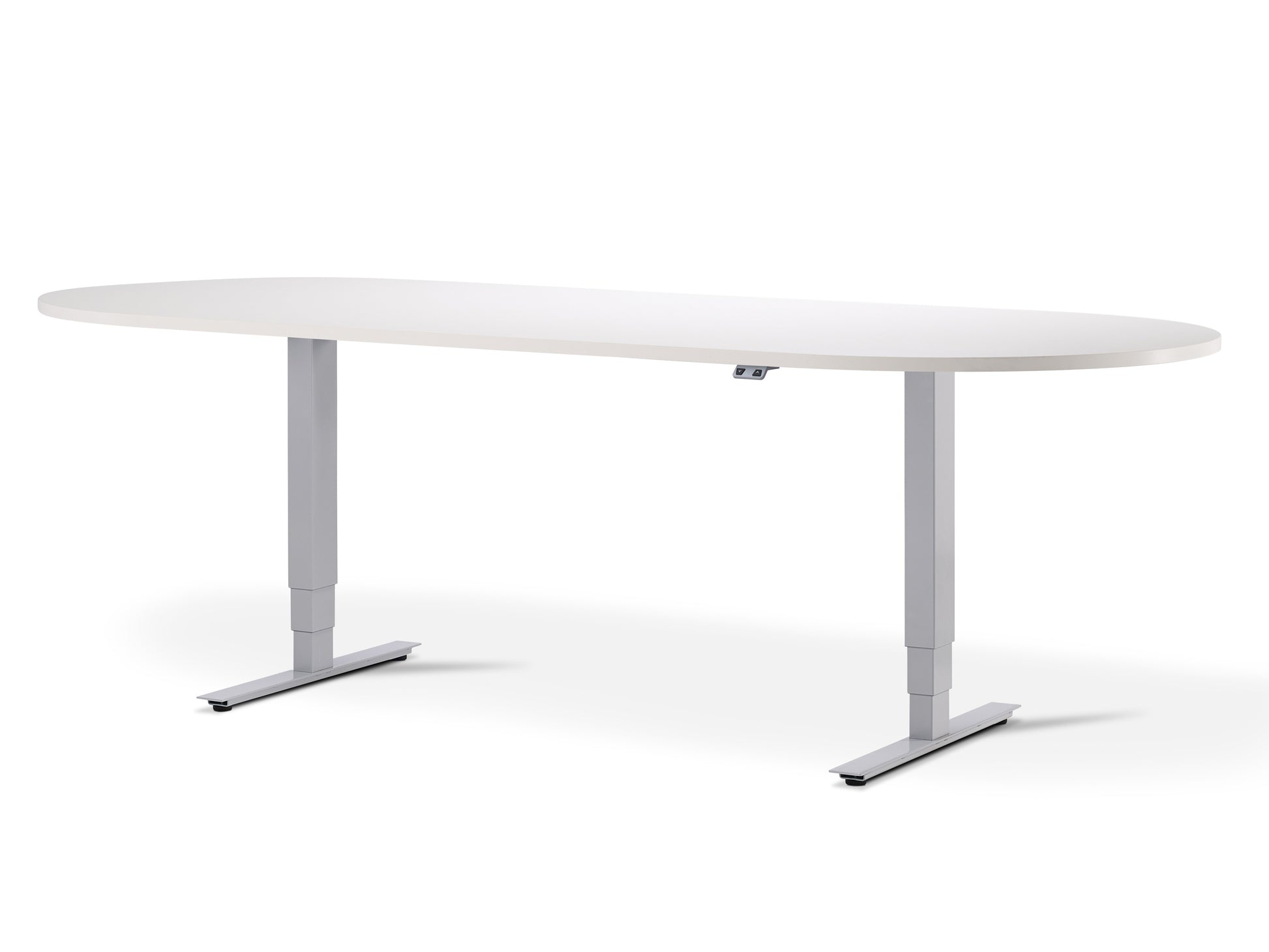 The Stockholm electric height adjustable meeting table is 2.4 m x 1 m and features pleasant curved ends, it's Ideal for smaller boardrooms and collaborative areas where standing up for meetings provides a lively and energetic cadence.