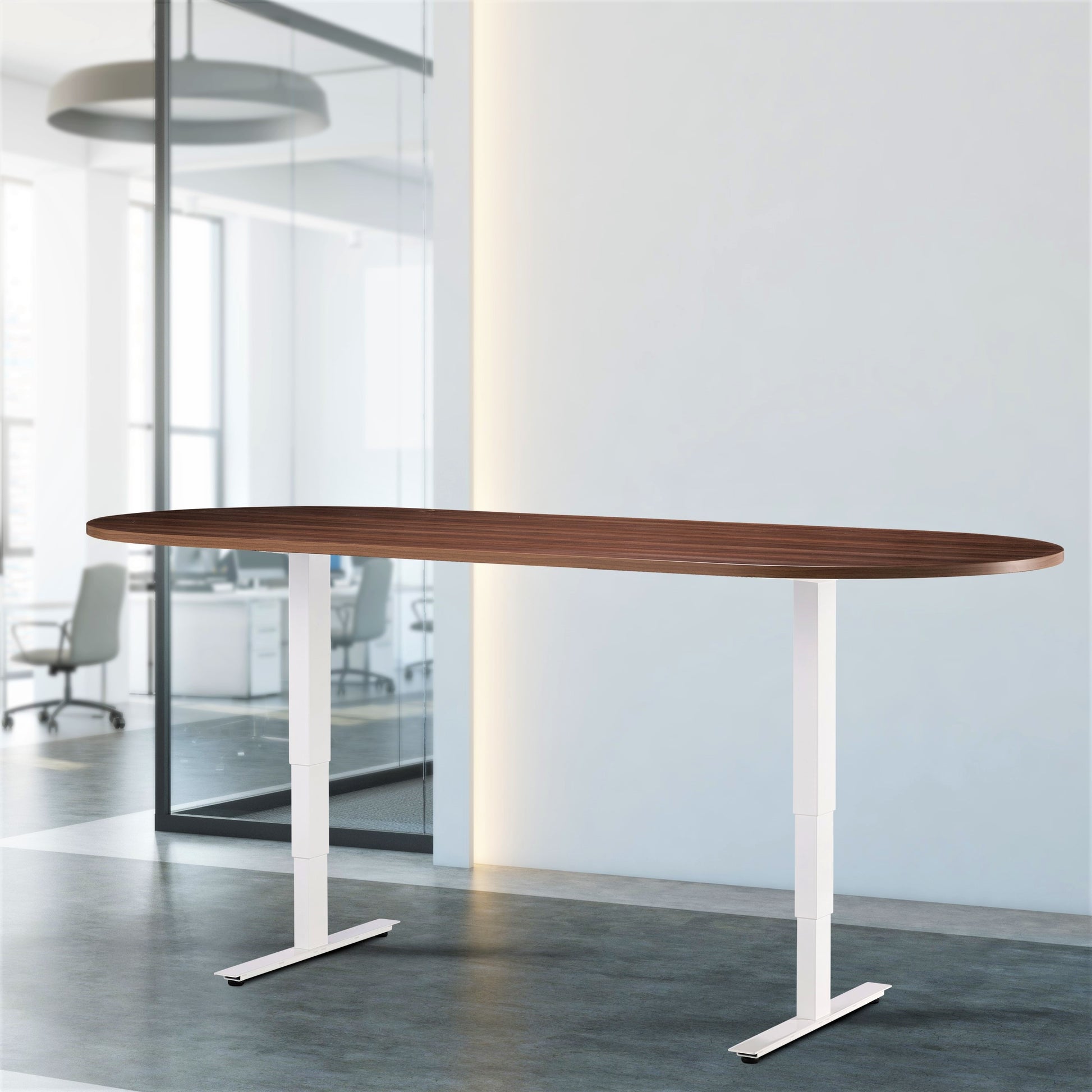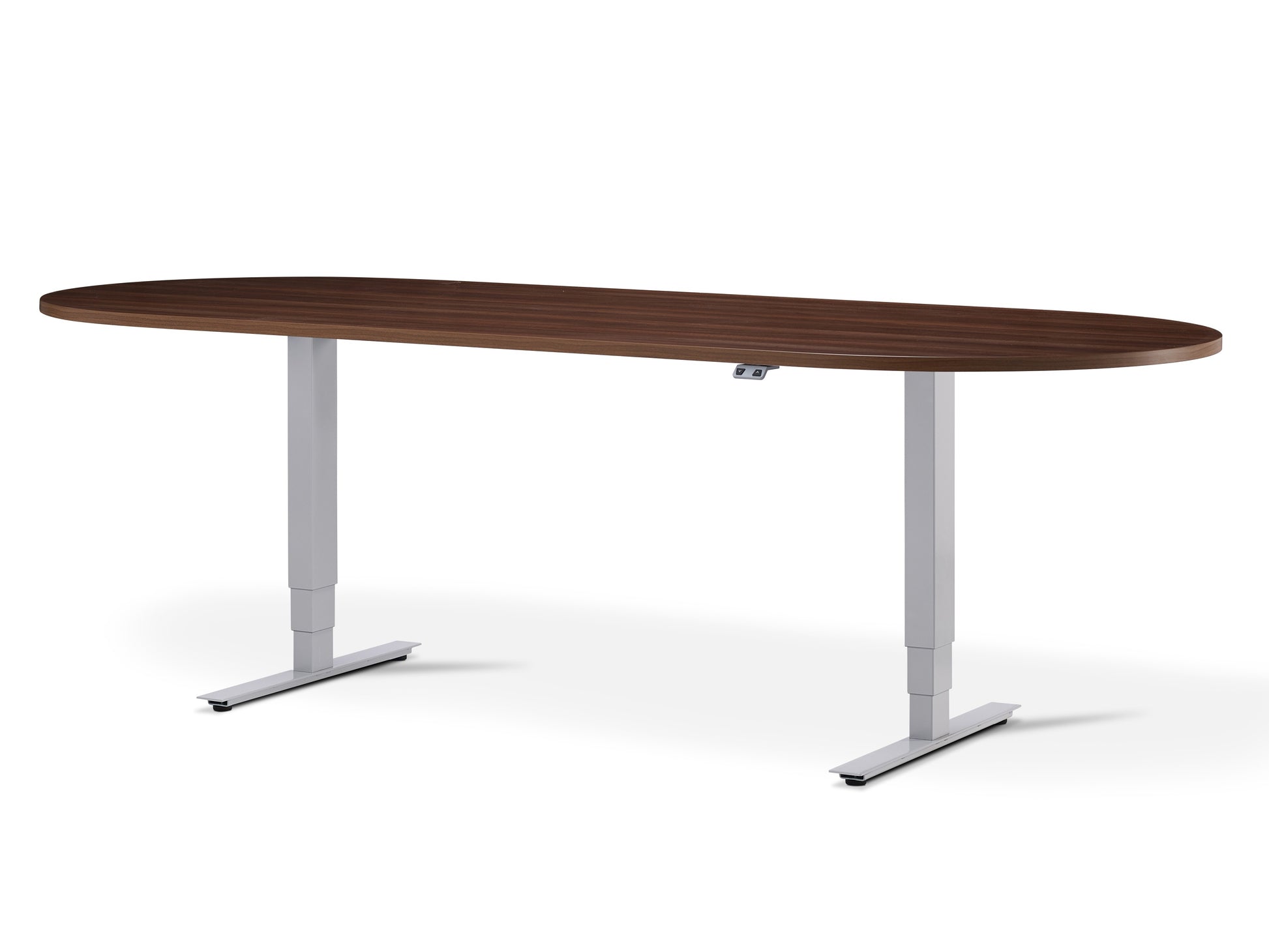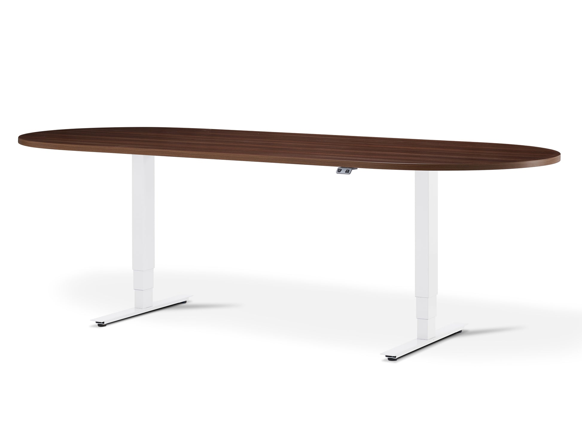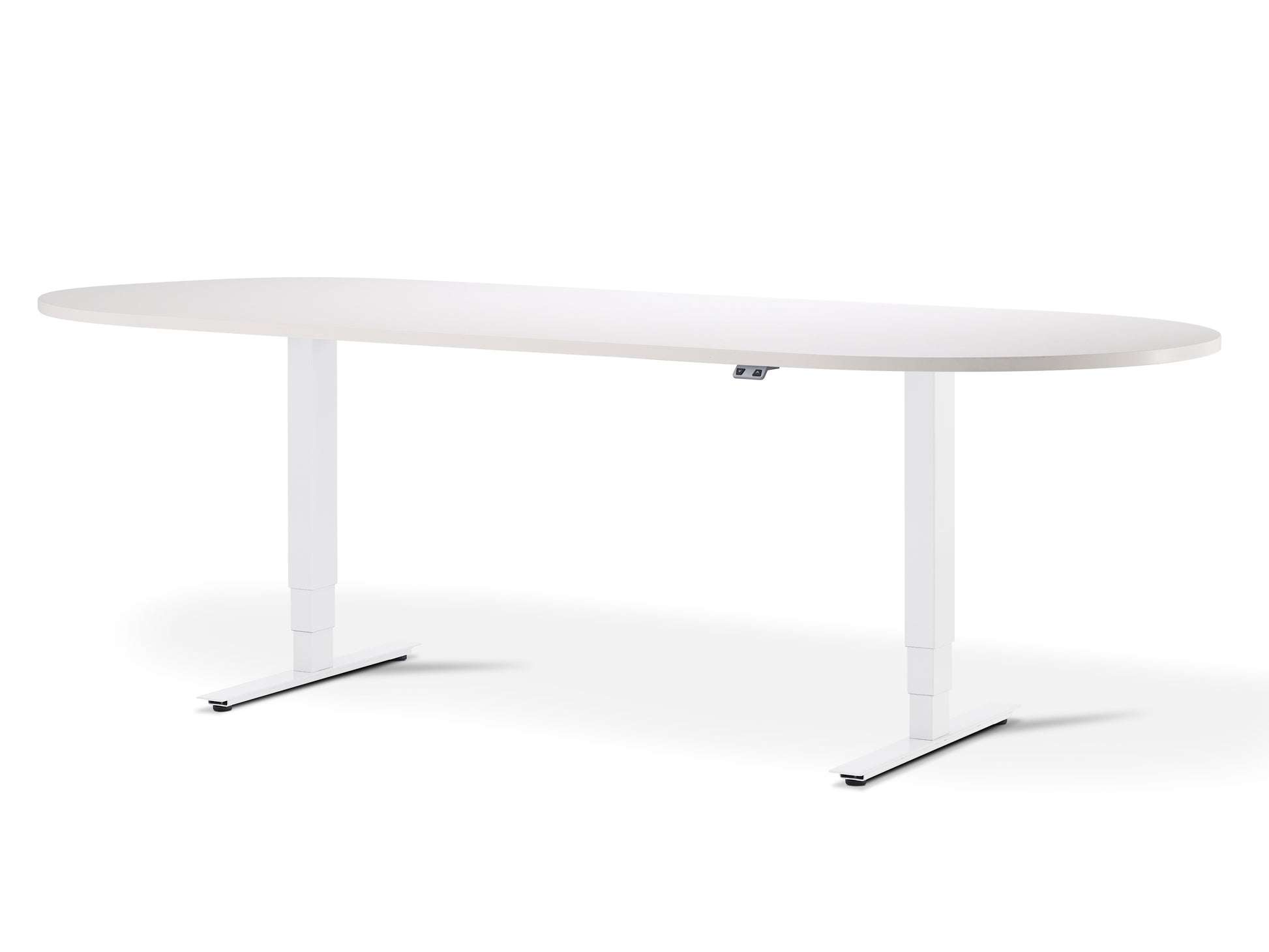 The Stockholm electric height adjustable meeting table is 2.4 m x 1 m and features pleasant curved ends, it's Ideal for smaller boardrooms and collaborative areas where standing up for meetings provides a lively and energetic cadence.