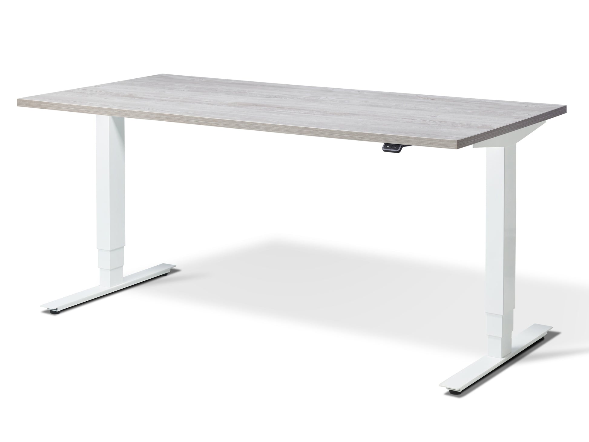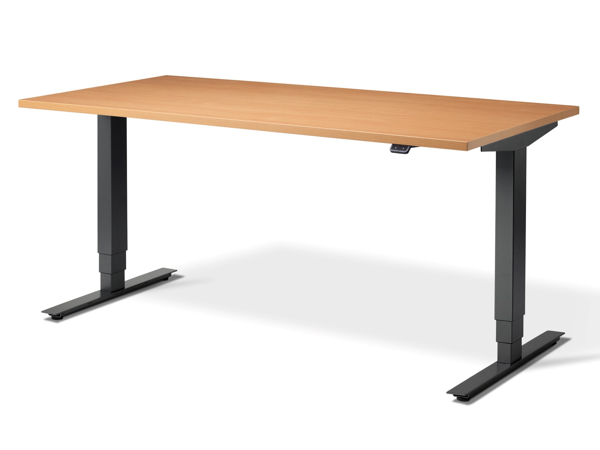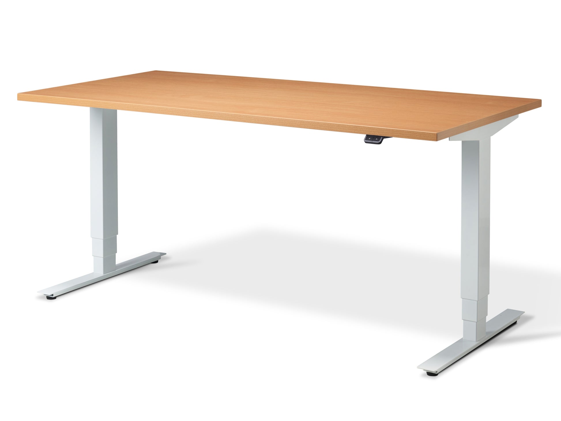 Our desks comply with CE marking and all European directives for machinery, one of these safety directives we adhere to is that you have to be in physical contact with the operational switch in order for the desk to move. Cheap Chinese imports often have the feature of a 'one touch' switch, enabling you to press the switch once and leave the desk to move to your pre-set position, this is specifically not approved by EU/UK law and could potentially result in injury, especially to pets and children.